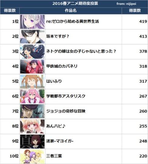 每到新一季的新番快要登场的时候,一些媒体就会评选出他们所期待的作品。而近日,日本知名网站nijipoi就对于春季新番期待度进行了调查,并且公布了最终的评选结果。